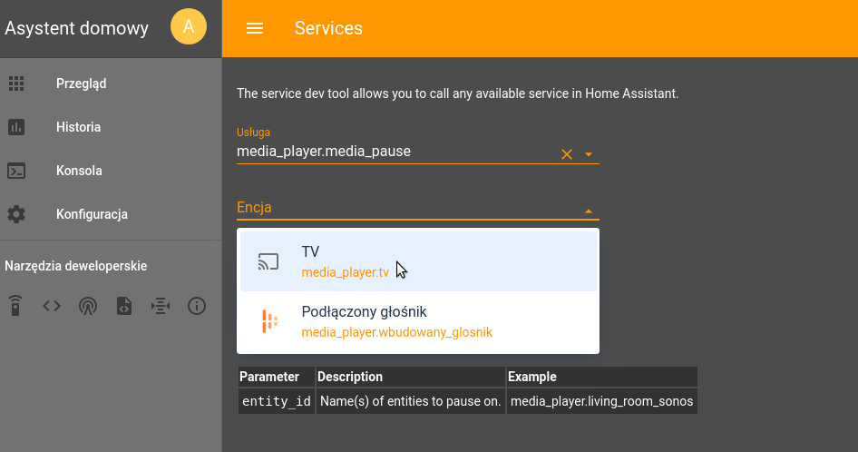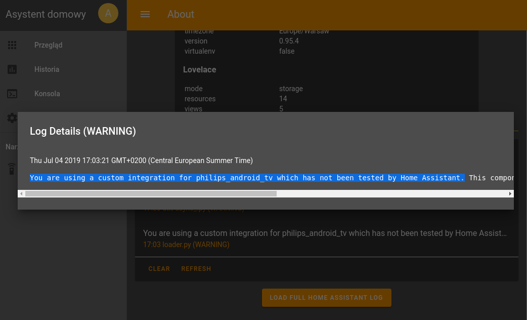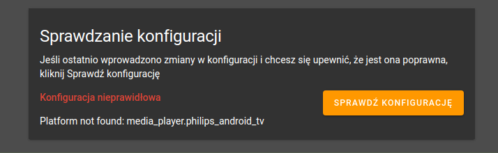 Może się zdarzyć, że dodana własna integracja (w tym przykłdzie sterowanie telewizorem) nie przechodzi walidacji i nie działa poprawnie, objawia się to zwykle w ten sposób