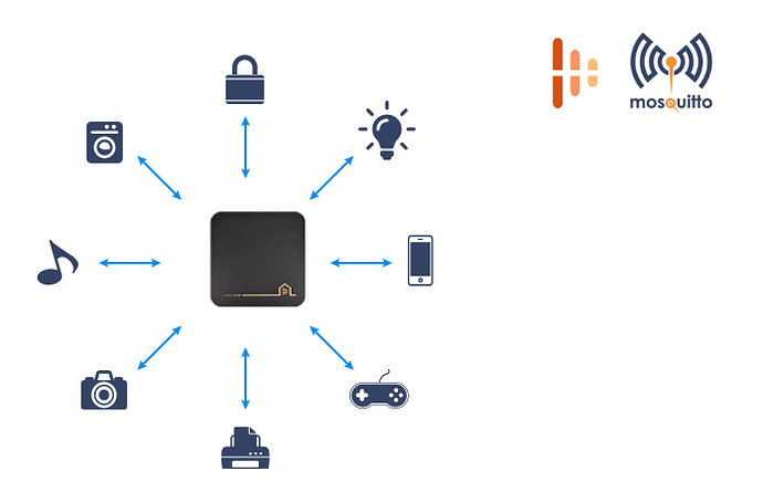 Na bramce dostarczamy wbudowany broker MQTT oraz usługę zapewniającą jego działanie "z pudełka" po starcie bramki.