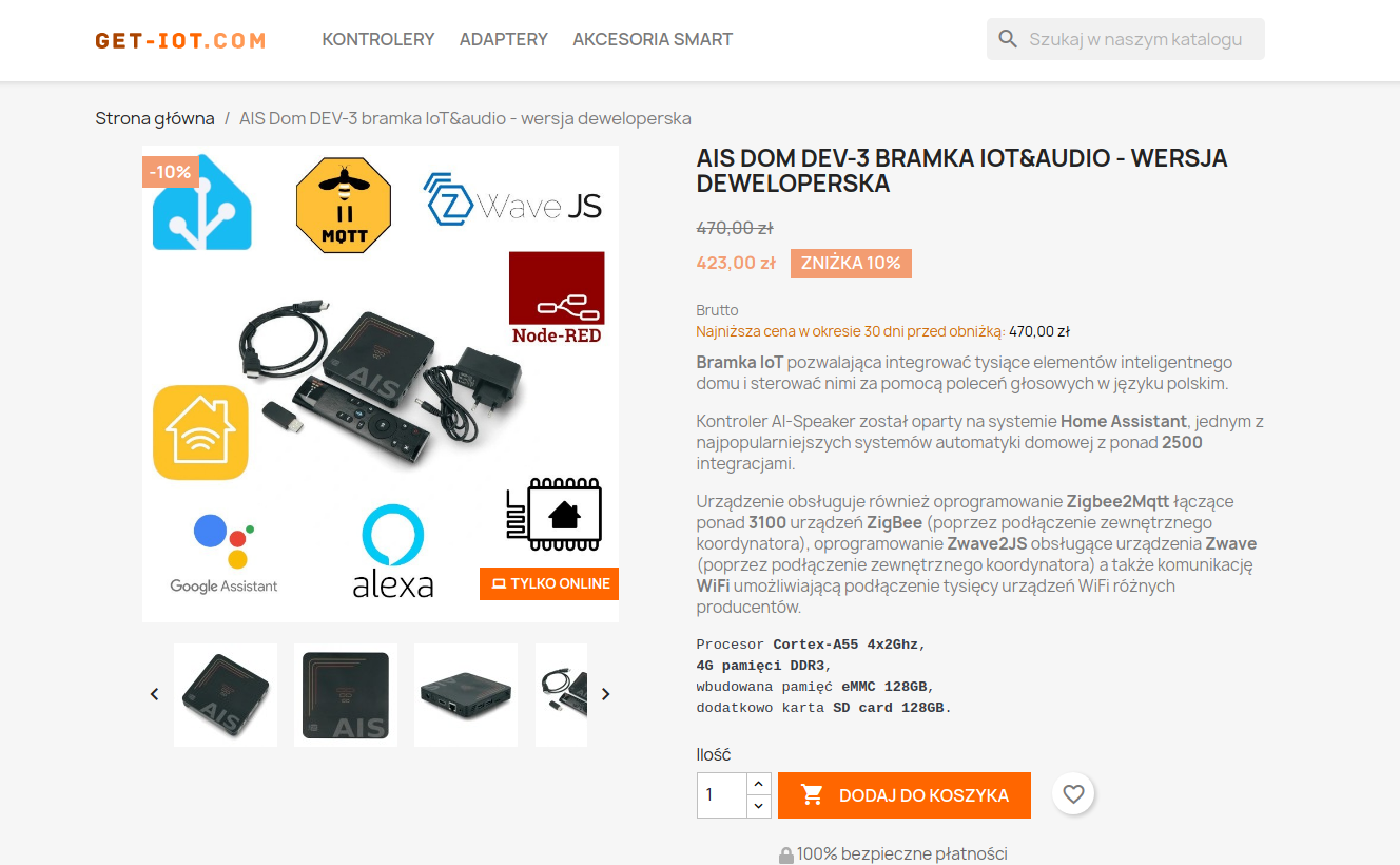 Nowo sprzedawane bramki AIS, dostarczane są już z zainstalowanym systemem Linux oraz Home Assistant Supervised - AIS DOM DEV-3 BRAMKA IOT&AUDIO - WERSJA DEWELOPERSKA