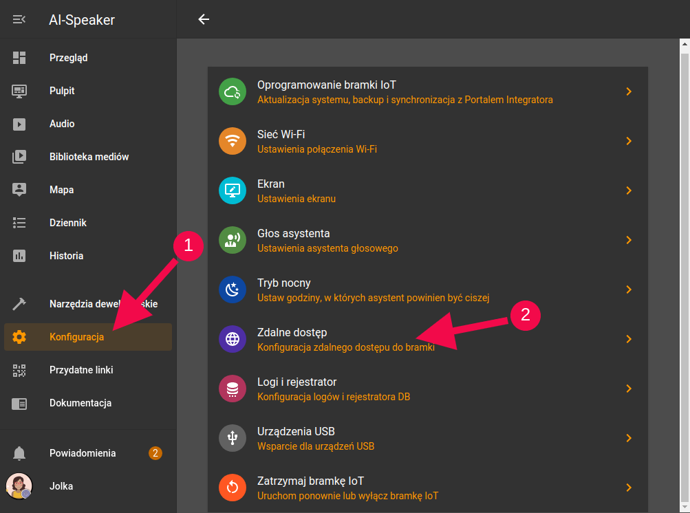 Możesz skonfigurować dostęp do Twojej lokalnej bramki przez Internet. Dzięki temu będziesz mógł sterować automatyką w swoim domu (także głosowo) nie tylko w swojej lokalnej sieci, ale też z dowolnego miejsca z dostępem do Internetu.
